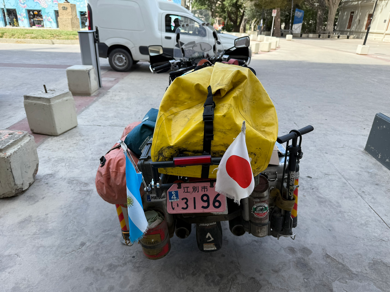 호기심 많은 나는 오토바이로 다가갔다. 작은 오토바이에 어마어마한 짐들이 실려 있다. 심지어 스페어타이어와 튜브가 오토바이에 묶여 있다. 자전거 타이어에 바람 넣는 도구도 매달려 있다. 일본 혼다의 'Benly'라는 125cc 바이크다. 장거리를 뛸만한 크기가 아니다. AI에 물으니 일본에서 배달용이나 업무용으로 가장 많이 쓰이는 기종이란다. 연비가 좋고, 큰 연료탱크가 달려 있으며 구조가 단순해 잔 고장이 없는 가장 평범한 오토바이란다. 뒤 꽁무니에는 아르헨티나와 일본 국기가 달려 있다. 번호판을 보니 한자로 '江別市'라고 쓰여 있다. 구글맵에서 찾아보니 일본 삿포로에 붙어 있는 에베츠시란다. 일본 홋카이도에서 여기까지 몰고 왔다는 얘기다.