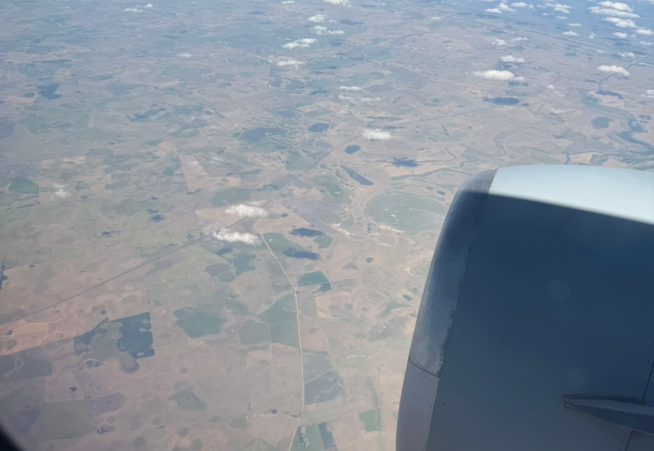오늘 이 비행기의 항로는 아침에 부에노스아이레스에서 출발하여 Mar del Plata, 바이아블랑카를 거쳐 바릴로체까지 갔다가, 오후에 역순으로 부에노스아이레스로 돌아오는 것이다. 바이아블랑카를 이륙한 비행기는 동쪽으로 대서양 해안선을 따라 마르델플라타로 날아간다. 팜파스의 거대한 농장들 위를 날아간다. 450km가 넘는 거리다.