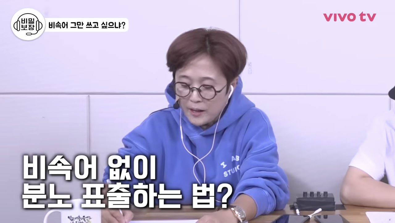 송은이: 30년 넘게 아나운서 하시면서 비속어나 이런 거 잘 안 써보셨잖아요.