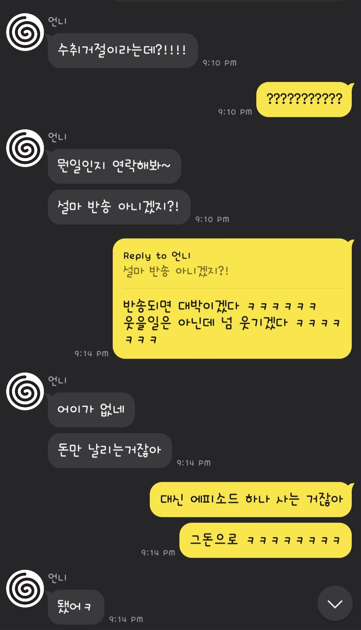 어느 날, 배송조회에 들어가 보니 "수취인 거절로 배송불가"라는 메시지가 있다며 언니가 연락을 해왔다.