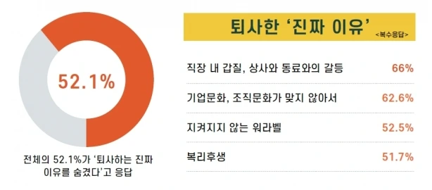 그럼에도 사람들은 '알린다고 해도 달라지는 것이 없을 것 같아서' 혹은 '나중에 다시 만날 수도 있으니까' 진짜 이유는 숨기고 조용히 퇴사하는 경우가 많았던 것이다.