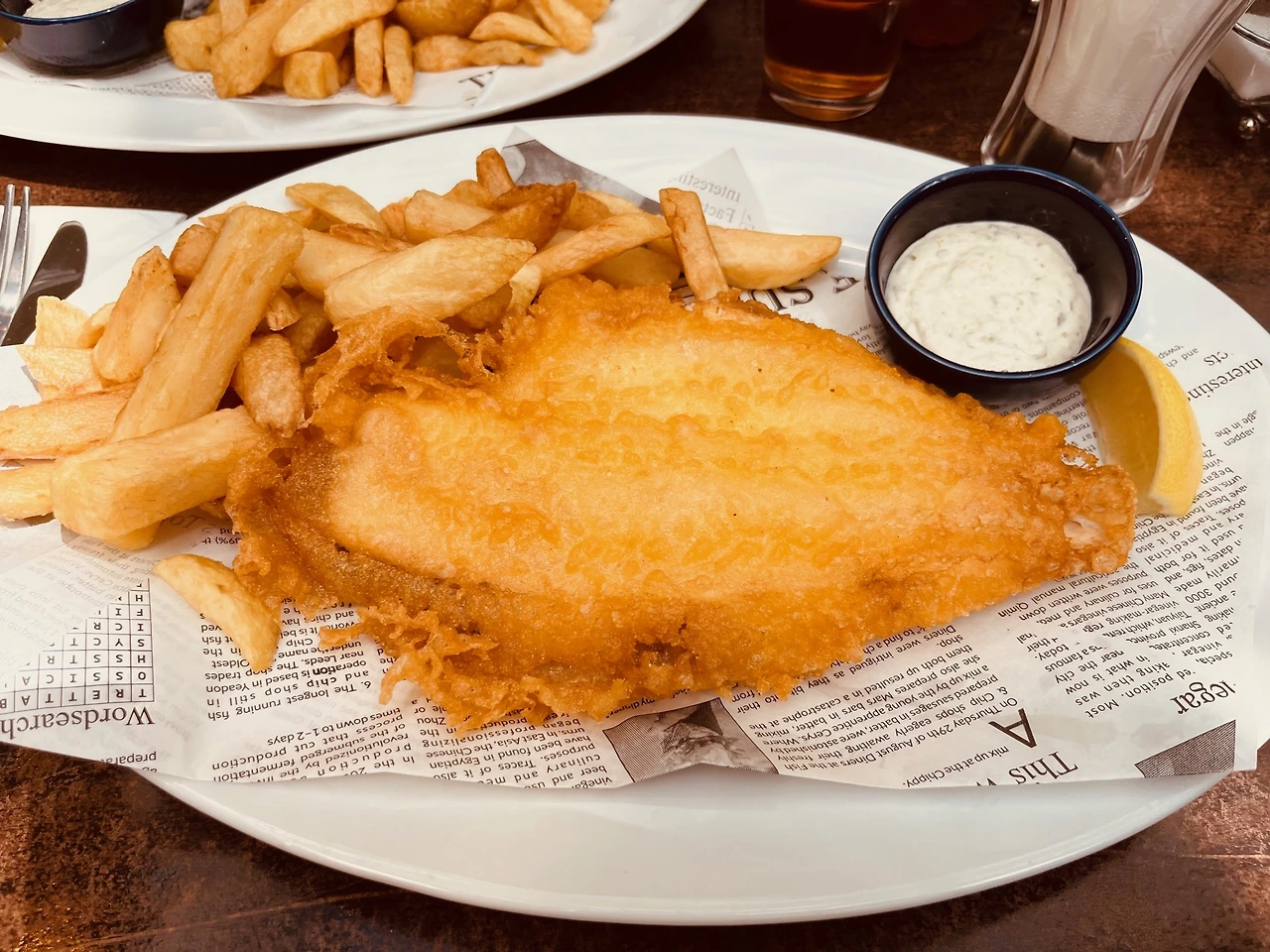 메뉴판 제일 윗줄에 있는 게 대구(cod)였는데, cod는 캐나다에서도 쉽게 접하는 생선이라 좀 특이하다 싶은 가자미(plaice)를 시켜보았다. 하지만 대구가 피시앤칩스로 제일 흔하게 쓰이는 데는 다 이유가 있나 보다.