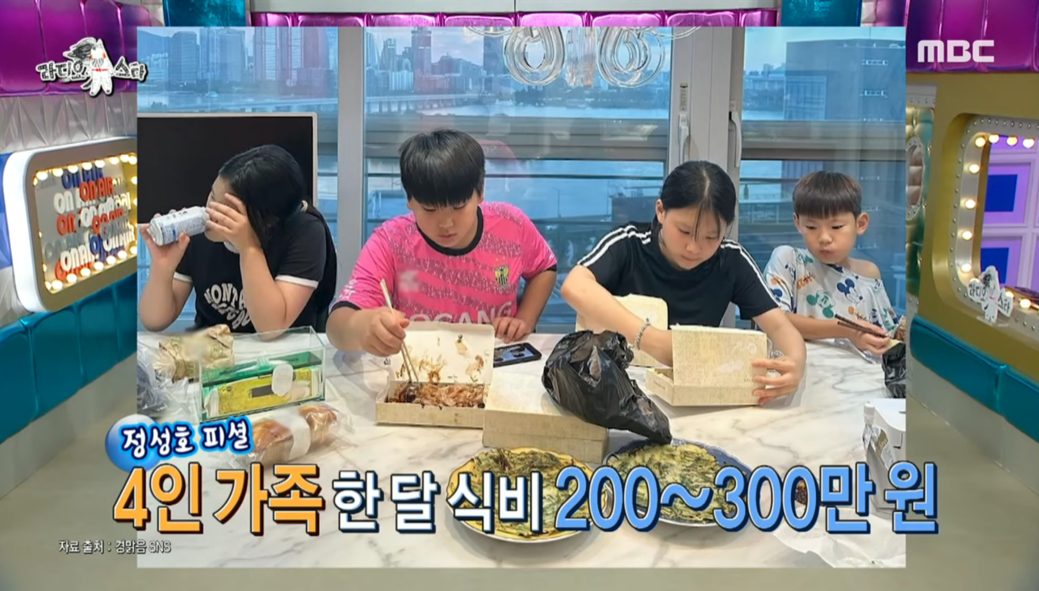 정성호는 현재 정성호 부부와 아이 다섯, 그리고 장모님까지 8명이 함께 살고 있다고 했다. 그 많은 수의 식구를 위한 식비만 해도 엄청나다고 하길래, 당연히 그러겠거니 생각했다.