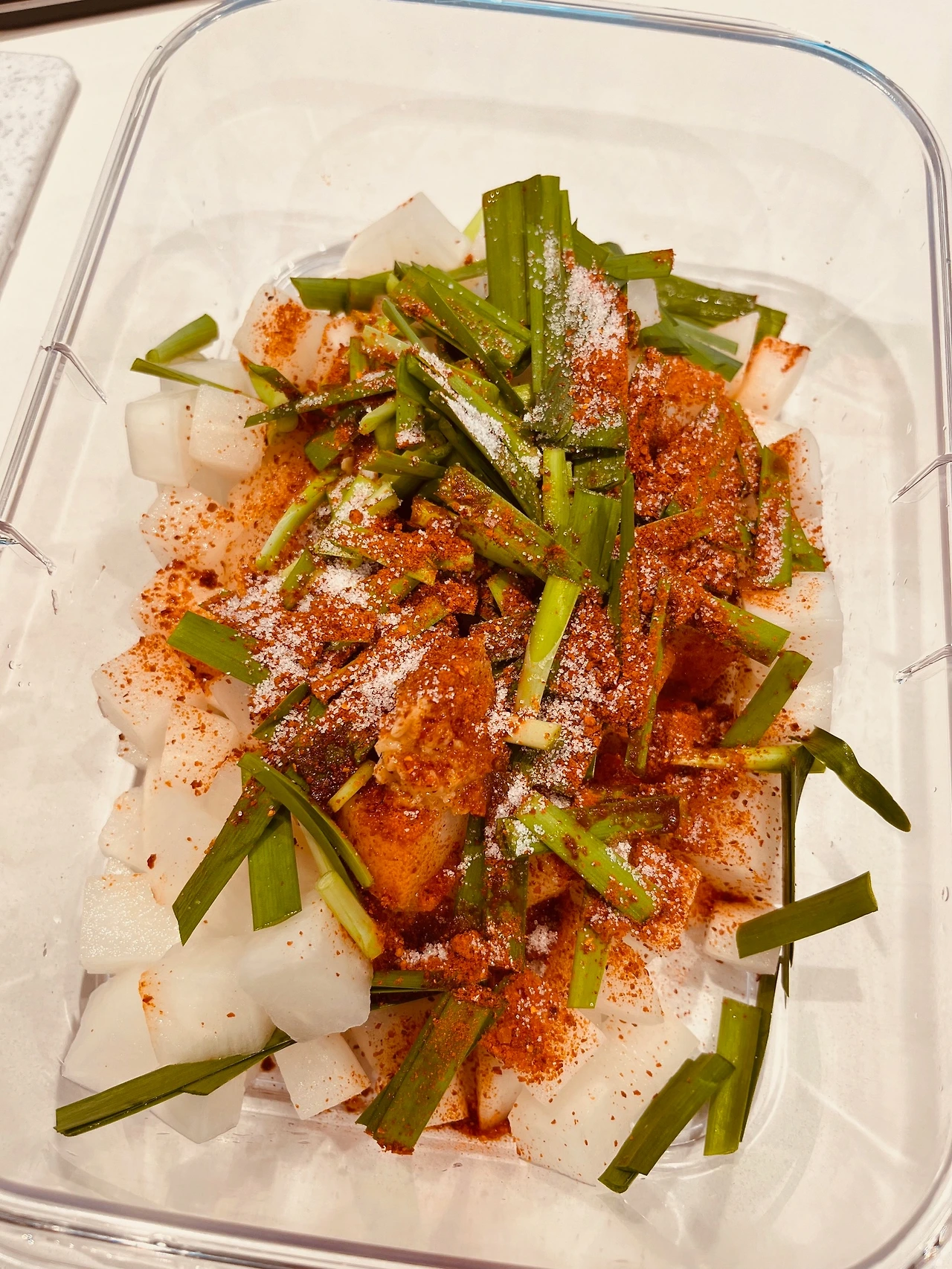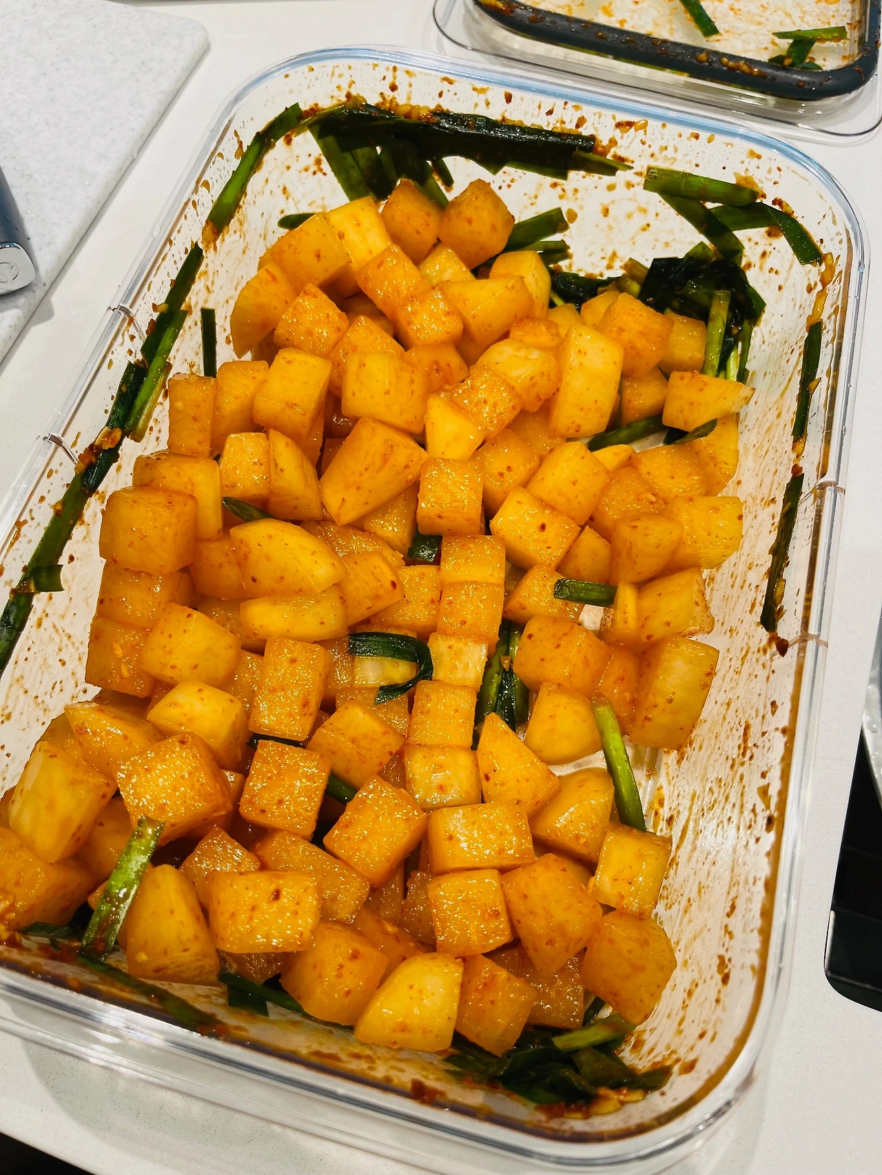 외국에 사는 탓에 깍두기가 너무 귀한 터라 직접 해봤는데 결과물이 생각보다 괜찮아서 몇 번이나 해 먹었던 좋은 기억으로 남은 음식이었다.
