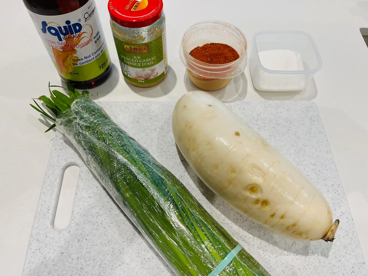 무와 부추는 물론이고, 평소에 요리를 하지 않는 터라 집에 액젓 하나 없어서 그것도 사 옴.