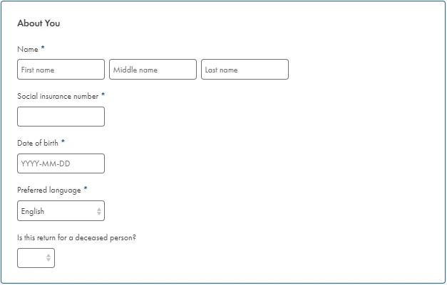 우선 위의 링크를 따라 Wealthsimple Tax 웹사이트에 들어가서 회원가입하시고, 그다음부터는 해당되는 곳에 차례대로 입력하시면 됩니다.