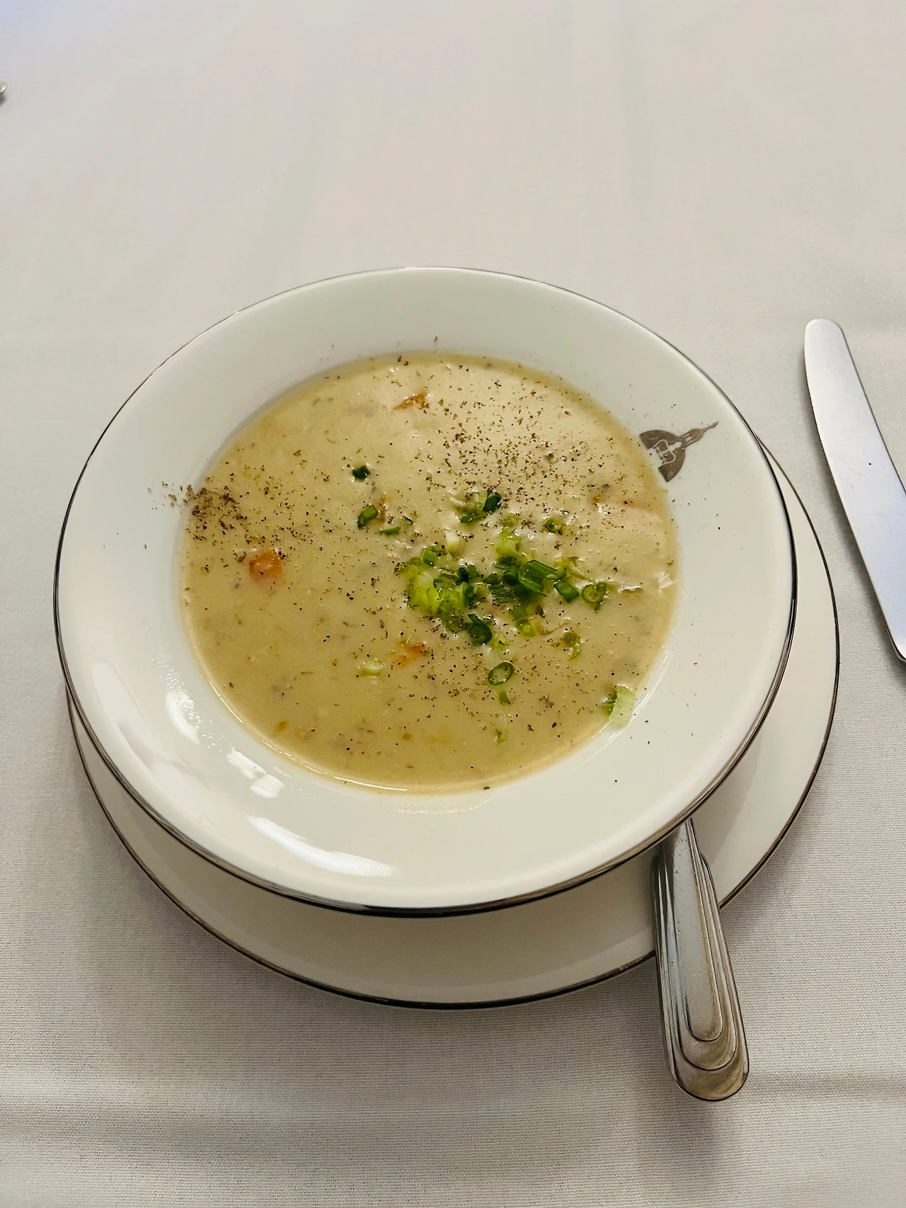 남편은 애피타이저로 'Salmon Chowder Soup', 메인 디시는 'Prosciutto Wrapped Cod'를 주문했고, 나는 메인으로 'Short Rib Rigatoni'를 주문했다.