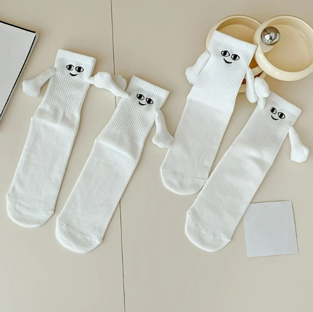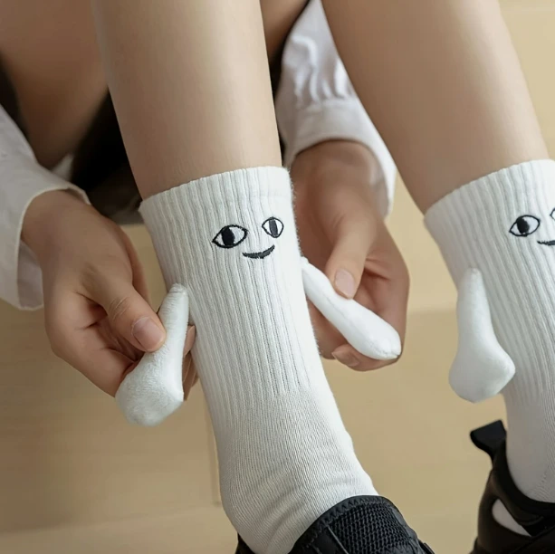 끝에 자석이 달려있어 두 양말을 가까이하면 서로 손을 잡는 자석양말.