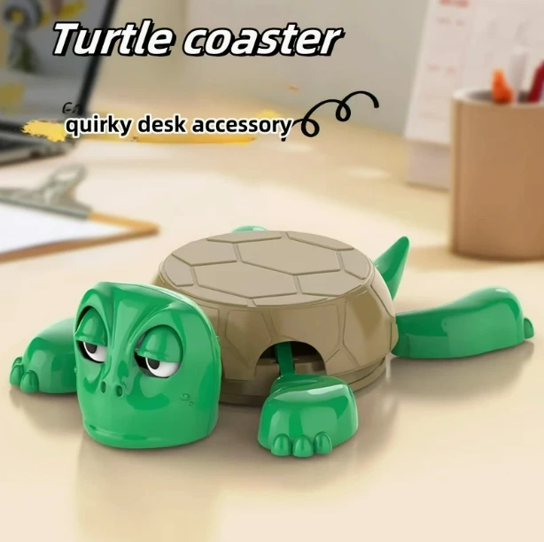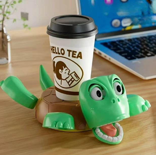 컵을 올리면 잠자던 거북이가 깨어나는 모습.