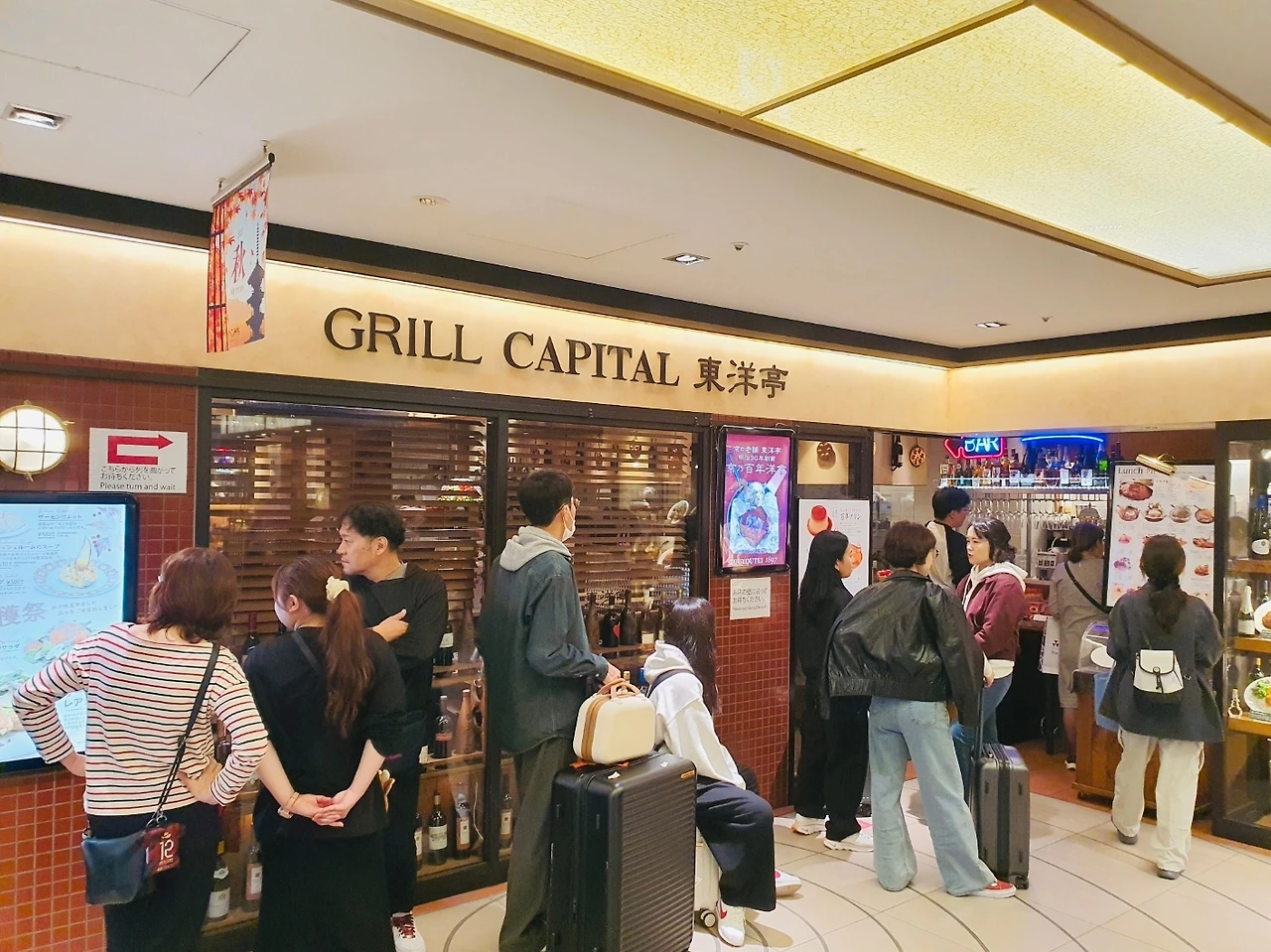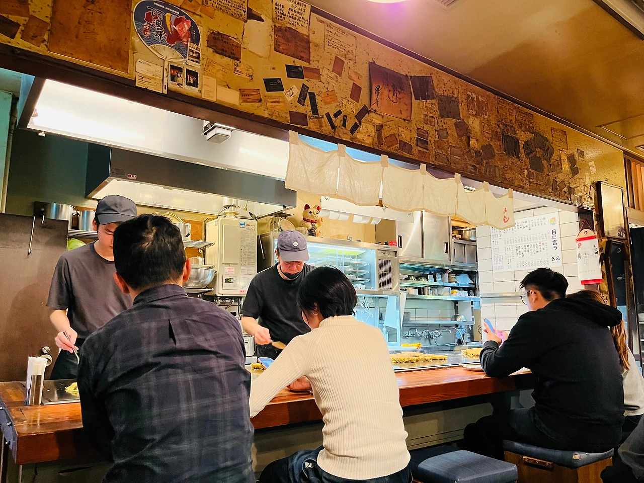 우리는 우메다 스카이빌딩 지하에 있는 '오코노미야끼 키지'라는 곳에 갔는데, 한 20분 정도 기다리고 들어가서 먹었다. 오랜 세월이 느껴지는 인테리어와 천장까지 바랜 기름의 흔적, 그 낡음마저도 힙하게 느껴져 나쁘지 않았으나, 지나치게 아낌없이 뿌린 소스는 마이너스. 짜요 짜.