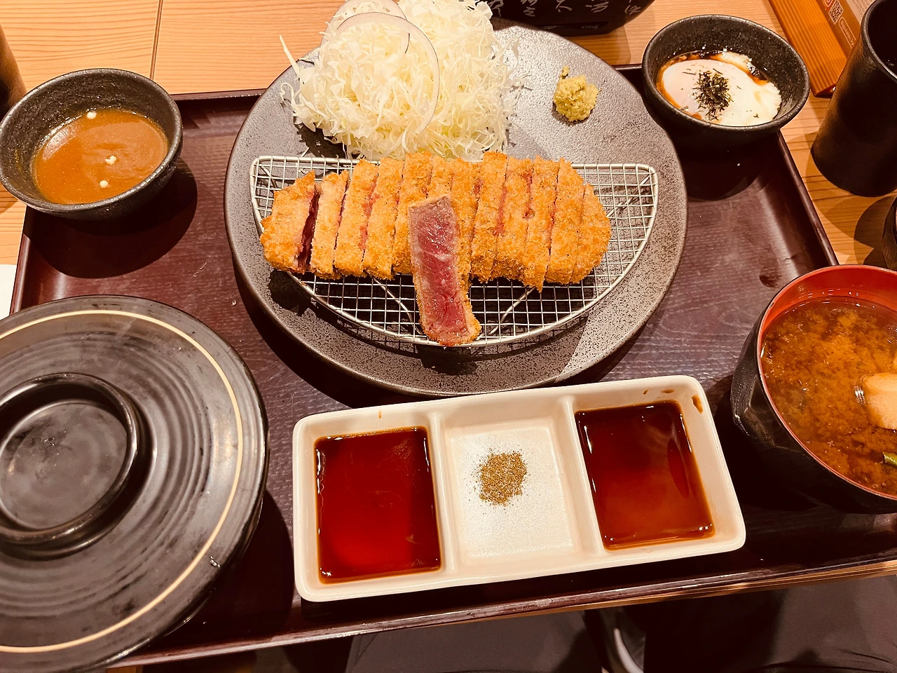 규카츠 맛집. 오사카 대표 규카츠 맛집으로 자주 언급되는 곳 중에는 '모토무라'랑 '토미타'도 있지만 이 두 식당 모두 대기 시간이 너무 길다거나 내부 환풍이 안된다는 등의 리뷰가 종종 보여서, 더 깔끔해 보이는 이 집으로 골랐다.