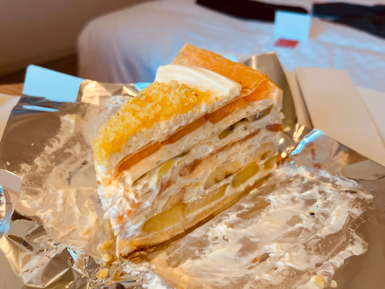 '1인 1메뉴'를 지키기엔 다들 배가 꽤 부른 상태라 조각케이크 2개를 테이크아웃해서 호텔에서 먹었다. 맛이 있긴 했으나 일본 가기 전부터 기대가 너무 컸던 탓인지 '인생 케이크' 정도의 황홀함은 없었다. 오히려 내 입엔 하브스의 시그니처인 밀크레페 케이크보다 과일 케이크가 더 맛있었음.