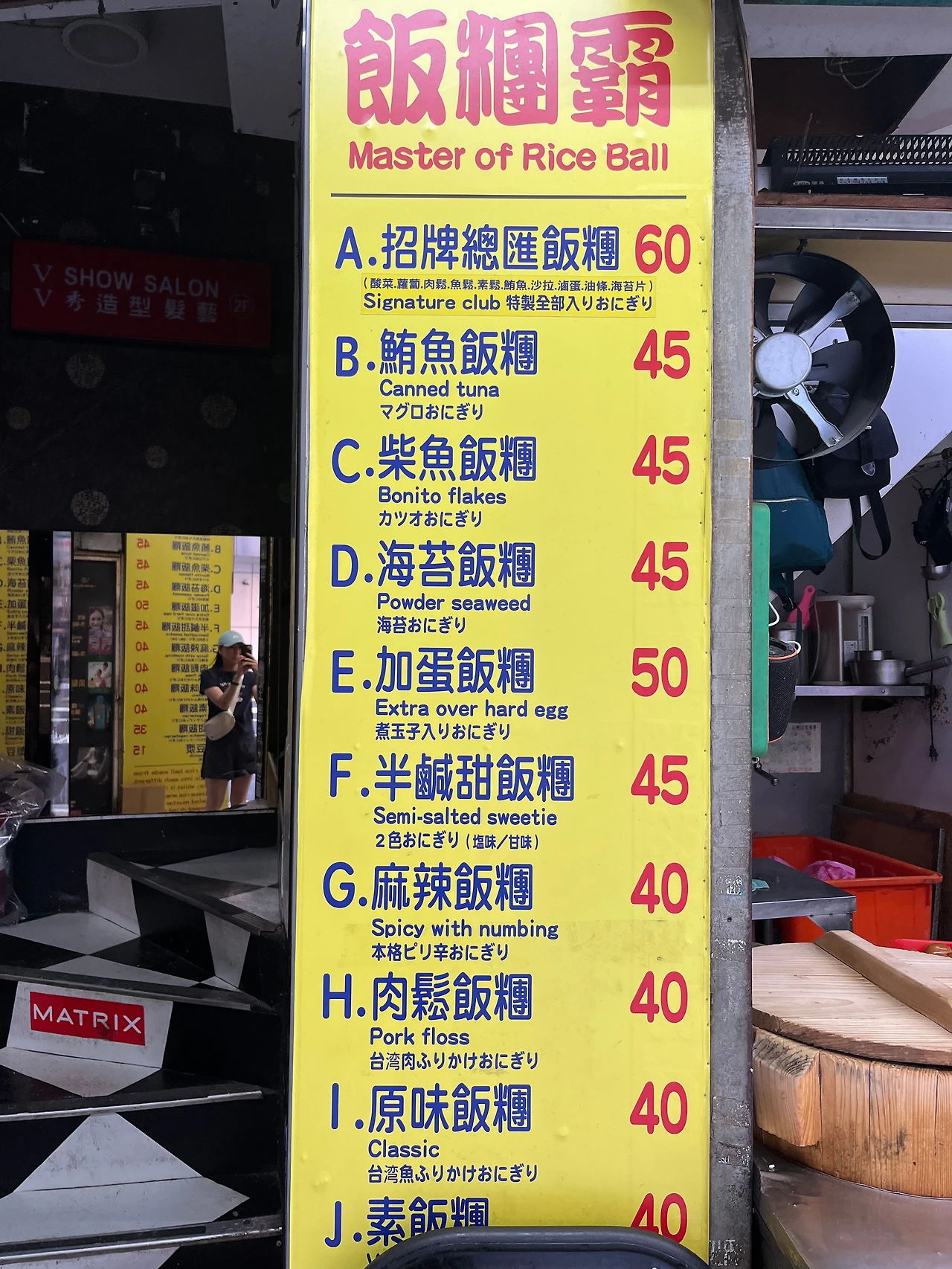 특히 타이베이역 근처에 있는 <Master of Rice Ball> 강추! 단, 아침엔 특히 줄이 많이 길 수 있으나, 회전율이 빠른 편이라 나쁘지 않다. 나의 또간집.
