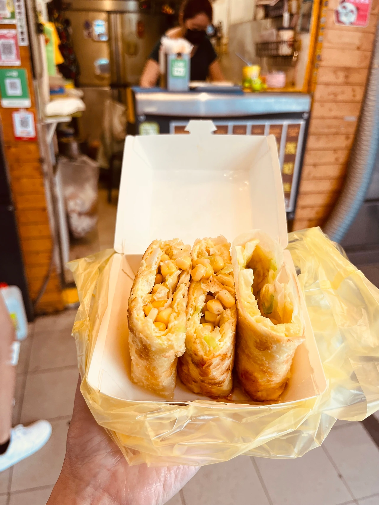 찹쌀밥을 얇게 펴고 그 안에 요우티아오, 돼지고기 볶음, 계란, 야채 등을 넣고 밥으로 감싸준다. 대만 음식 경험이 별로 없는 한국인한테는 좀 낯선 음식일 수 있겠으나, 나는 그간 캐나다에 살면서 이런저런 음식에 많이 노출이 된 덕인지, 너무너무 맛있게 먹었다.