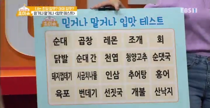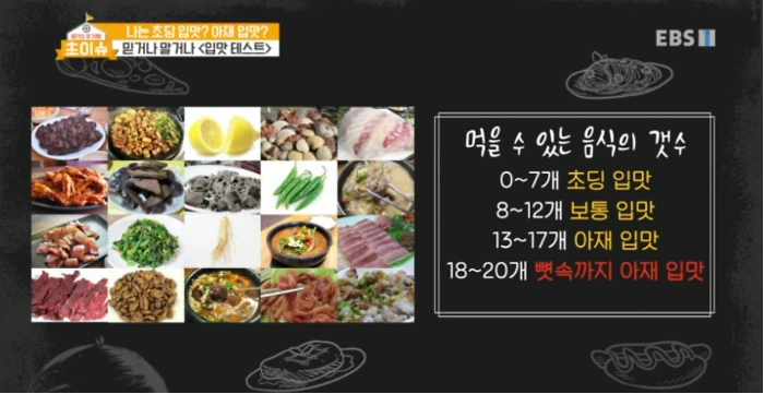 EBS에서 2018년에 방영한 HOT초딩 탐구생활 <초이슈>라는 프로그램에서 초딩입맛을 확인하는 “테스트”를 제시했다.