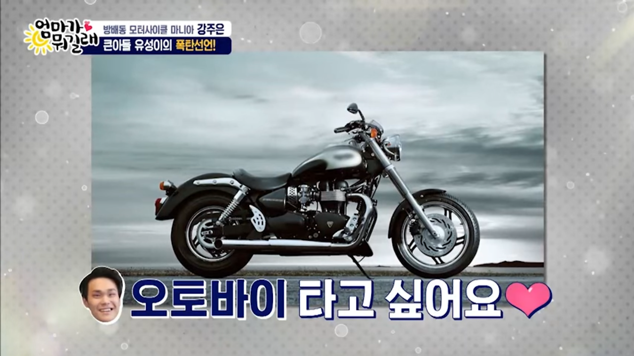 예전에 봤던 <엄마가 뭐길래>라는 프로그램에서 당시 스무 살이던 최민수, 강주은의 큰 아들이 오토바이를 타고 싶다는 얘기를 했다. 그에 강주은은 정색을 하며, 절대 안 된다고 했다. 오토바이를 타기 전에 먼저 교통과 도로 사정부터 익혀야 한다고.