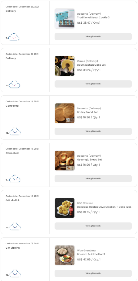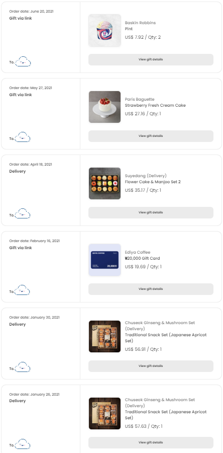그 해 말 내가 보낸 선물 히스토리에 들어가 보니, 엄마 아빠한테 13번, 언니한테 4번의 기프티콘을 쐈더라.