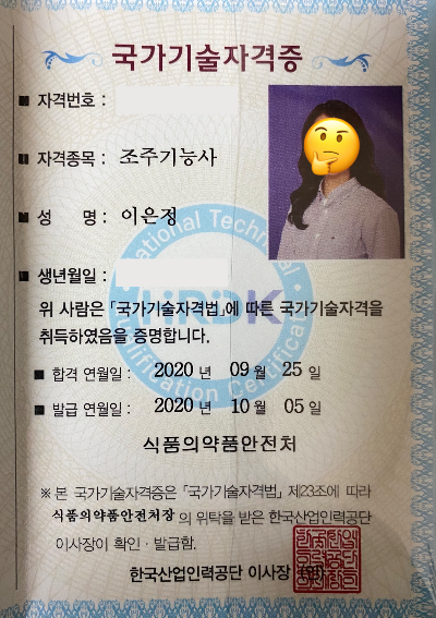 "아 맞다, 은정이 조주기능사 자격증 있잖아."