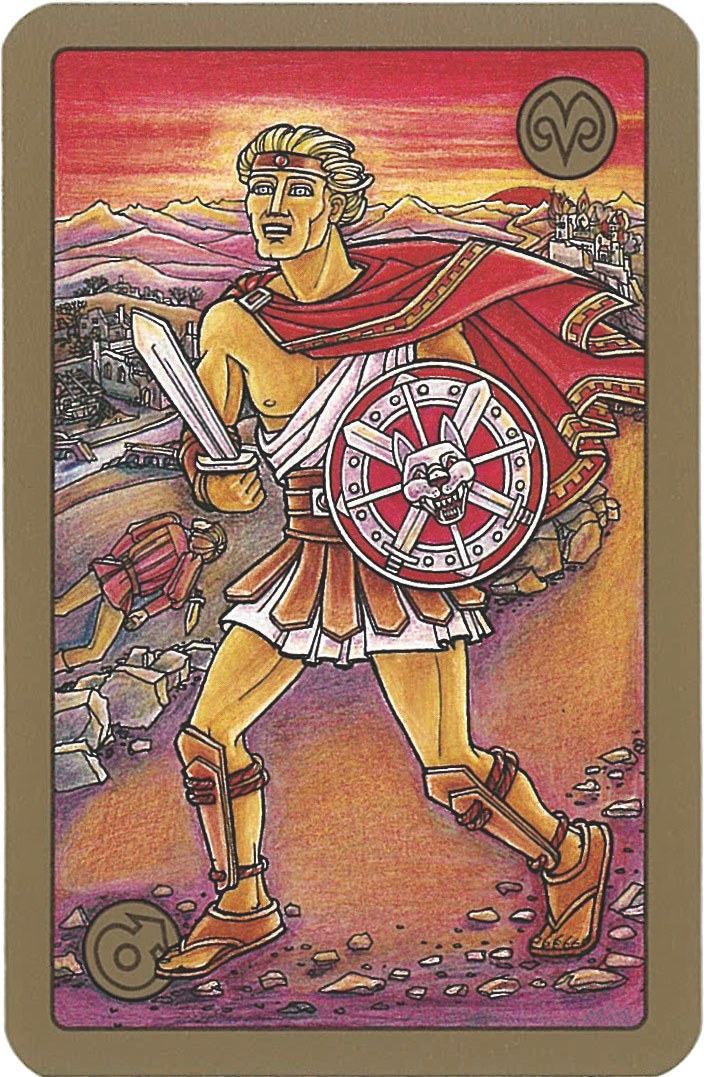 이 카드는 강력한 전투 능력과 용기를 상징합니다. 그것은 투지와 결단력, 군인정신, 도전과 모험을 나타내며, 때로는 충동성과 무모함을 뜻하기도 합니다.