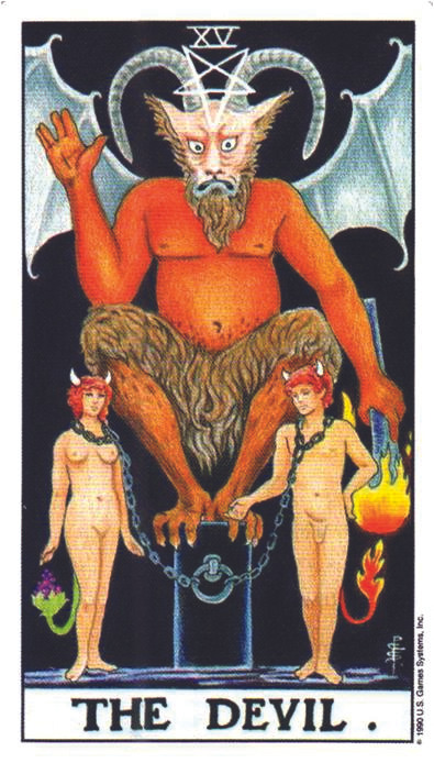 자기 고집과 억압: 악마 카드는 집착, 고집, 그리고 자유를 제한하는 속박을 상징한다. 자기 고집이 강한 사람은 자신의 생각에 얽매여 유연성을 잃고, 자신을 제약하는 모습과 일치한다.