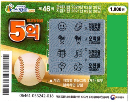 당첨자 인터뷰 스피또1000 46회차, 1등 5억