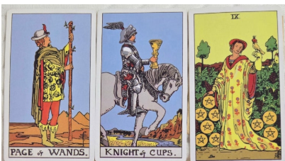 누군가를 믿는다는 것은 쉽지 않은 일입니다. 마음을 열고, 신뢰를 걸고, 사랑이든 우정이든 관계를 이어간다는 건 그만큼 상처받을 가능성도 함께 껴안는 일이니까요. 그래서일까요. ‘혹시 저 사람이 나를 속이고 있는 건 아닐까?’, ‘내가 이용당하고 있는 건 아닐까?’라는 의심은, 마음이 불안할 때 문득 고개를 듭니다. 오늘 뽑은 카드들—완드 시종(Page of Wands), 컵 기사(Knight of Cups), 펜타클 9(Nine of Pentacles)—은 그런 의심에 대한 단서를 조심스럽지만 확실하게 알려주고 있어요. 지금부터 이 카드들이 들려주는 진실을 함께 살펴보시겠습니다.