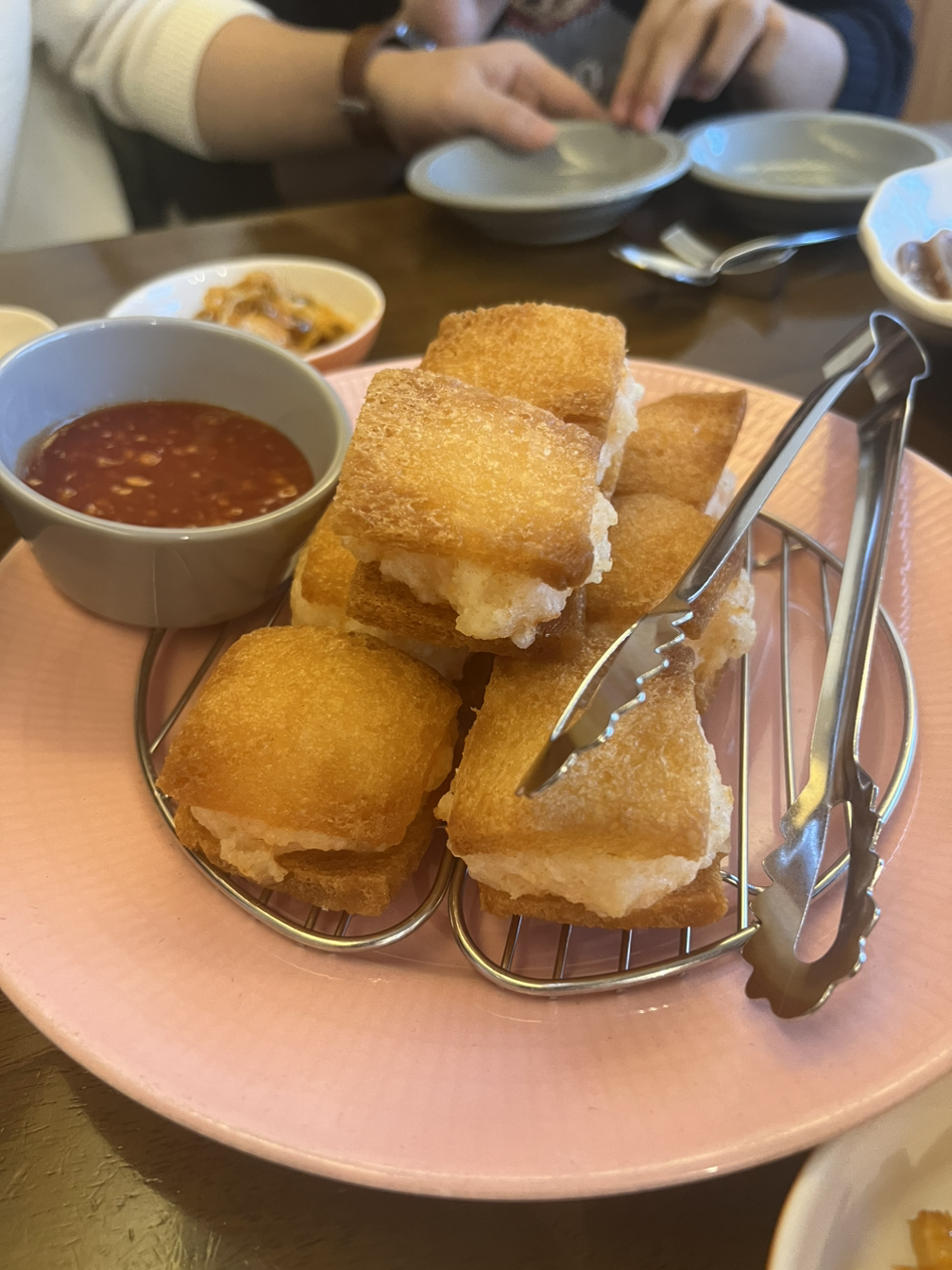 곧이어 멘보샤 8피스가 나왔다. 금방 튀겨져 나와 아주 따끈따끈했던 멘보샤. 튀겨진 빵의 바삭함과 새우살의 탱글함이 너무 잘 어우러졌다. 맛있었다! 인당 두 개씩 먹으니 느끼하지도 않고 딱 알맞게 먹은 기분이었다.