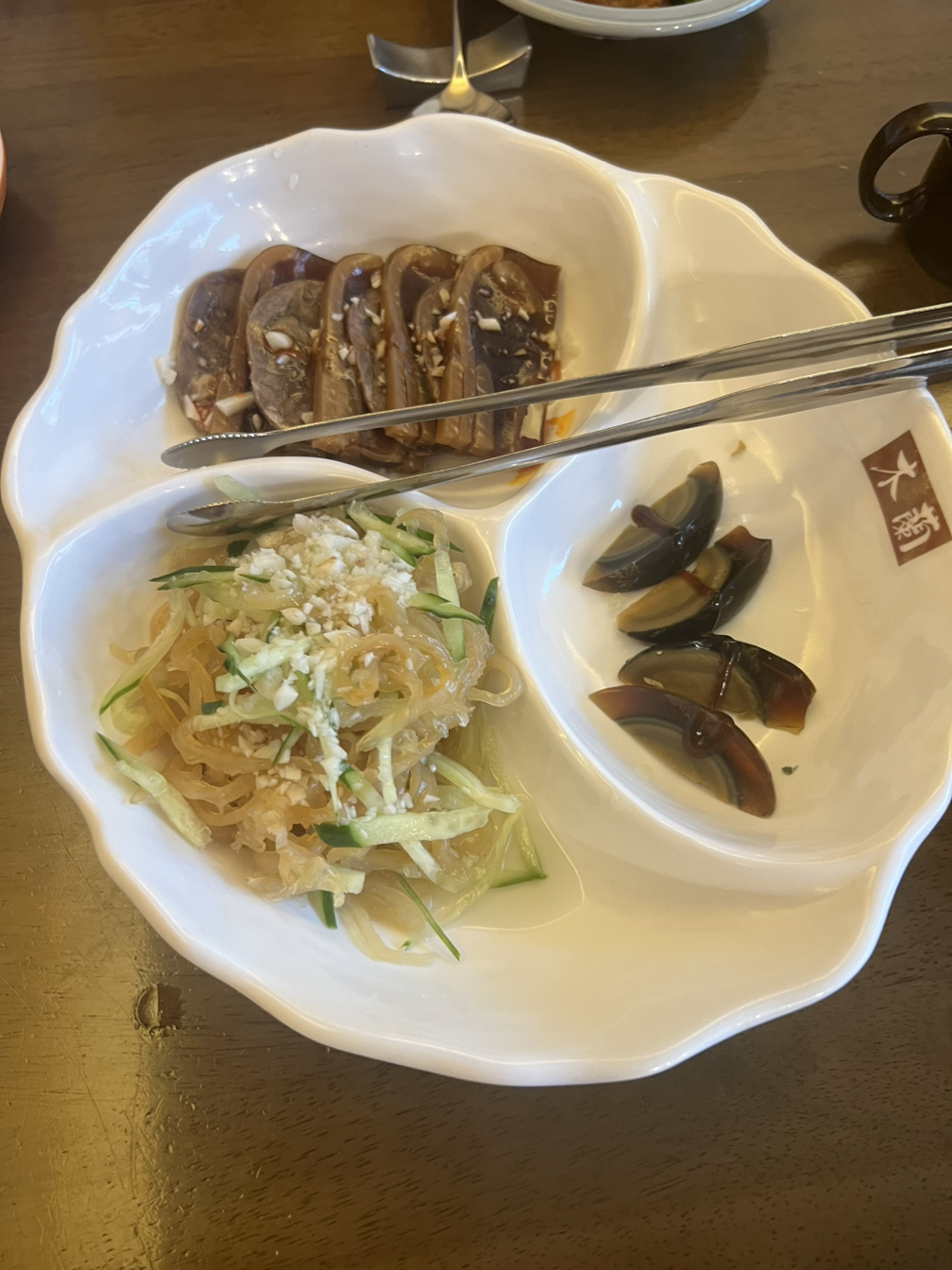 이제 C코스의 음식이 차례대로 나오기 시작한다. 이품 냉채는 냉채와 함께 정체를 알 수 없는 편육 같은 고기와 계란이 나온다. 쫄깃한 식감이 나쁘진 않아서 그냥 ‘아 이런 음식이구나’하고 넘어갔다. 팔보채와 유린기는 딱 머릿속에 떠오르는 그 맛. 무난하게 맛있지만 크게 임팩트 있지는 않았다.