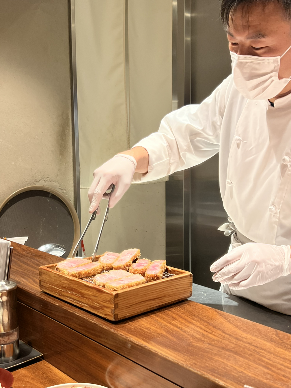 유창하진 않지만 영어로 최대한 친절하게 설명해 주시는 셰프님. 쾌적하고 고급스러운 분위기에서 퀄리티 있는 카츠를 맛볼 수 있는 곳이었다. 부위마다 조금씩 다른 식감과 맛을 느껴보는 것도 재밌었다.