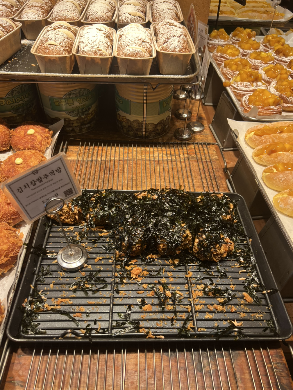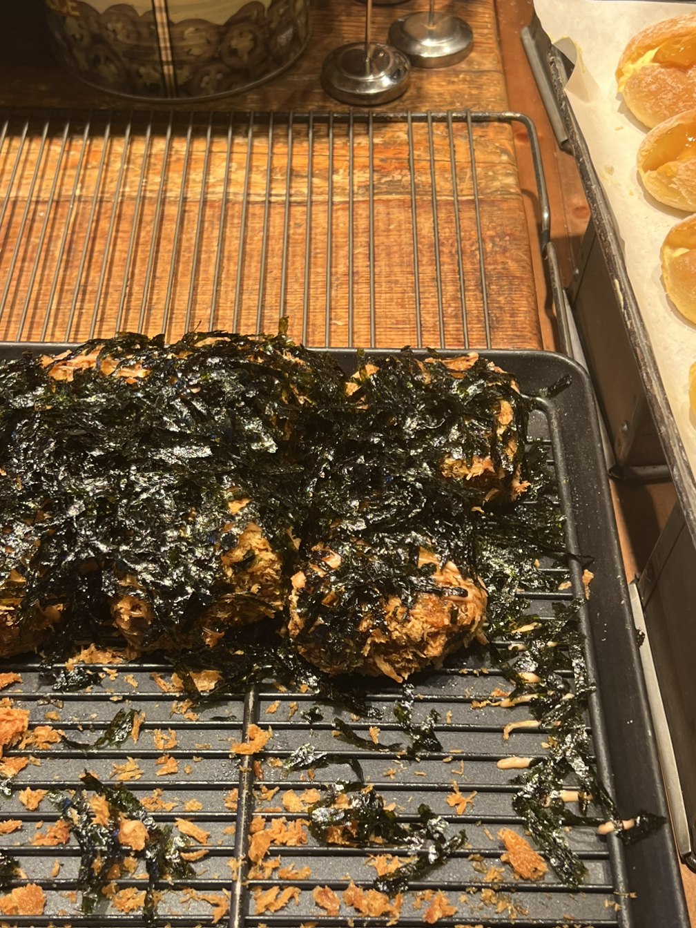 빵은 아니지만 내 최애라고 할 수 있는 이 주먹밥. 올 때마다 무조건 가장 먼저 트레이에 담기는 녀석이다. 겉에 튀김가루가 묻어있어 쫀득하면서 바삭하다. 대구에서 온 내 친구도 처음에는 의심의 눈초리로 한 입 베어 물었는데, 먹자마자 인정의 끄덕임을 보여주었다. 조금 더 컸으면 느끼했을 수도 있을 것 같은데 크기도 딱 적당한 것 같다. 어쩌면 이것이 바로 k-아란치니 아닐까.
