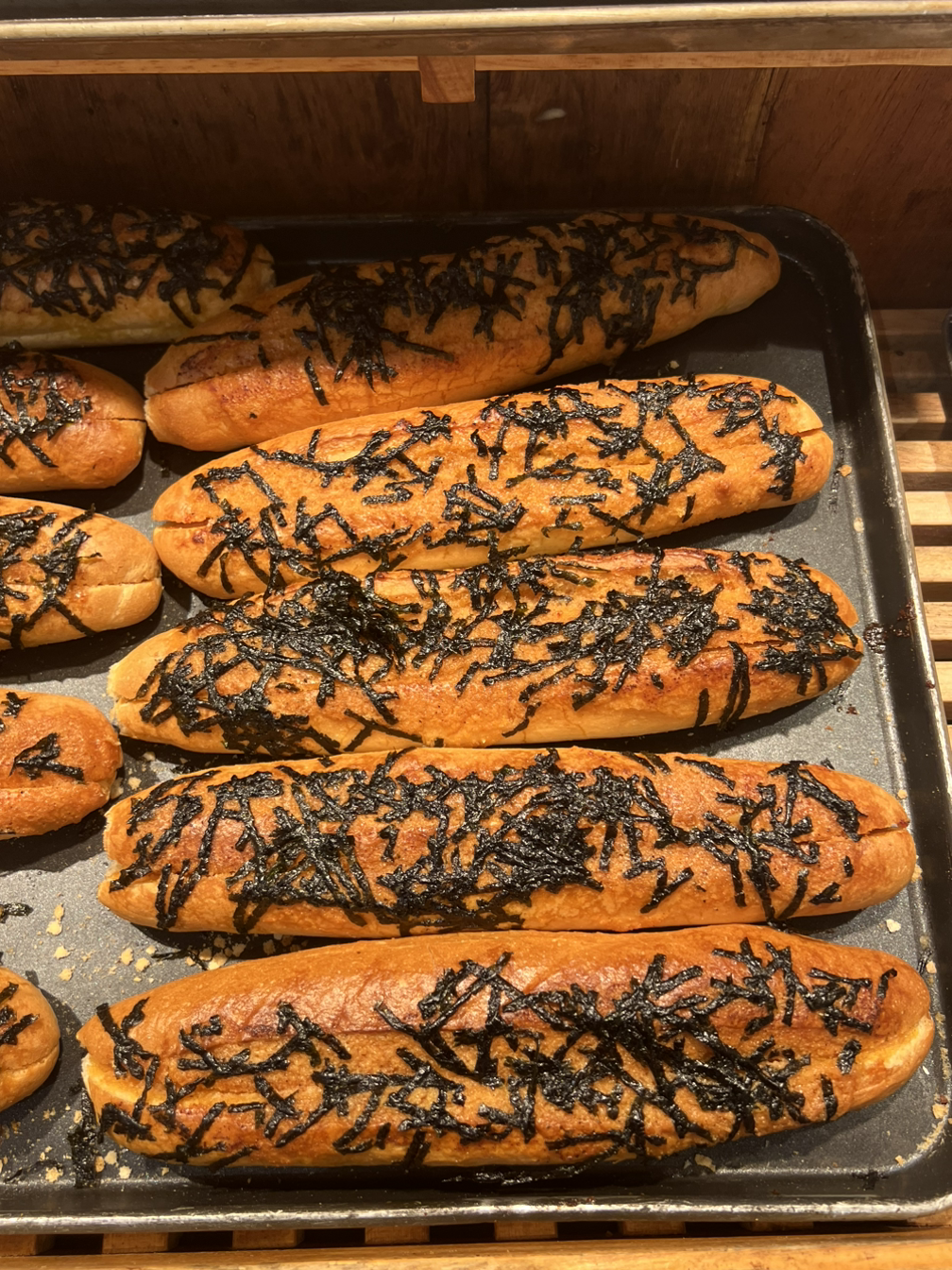바게트 사이에 명란젓이 가득 차 있다. 그리고 그 위에 짭조름을 증폭시켜 주는 김가루가 솔솔. 명란의 감칠맛과 아주 살짝 올라오는 매콤함의 조화가 너무 좋다. 맥주 안주로 함께해도 환상적일 것 같은 빵이다.