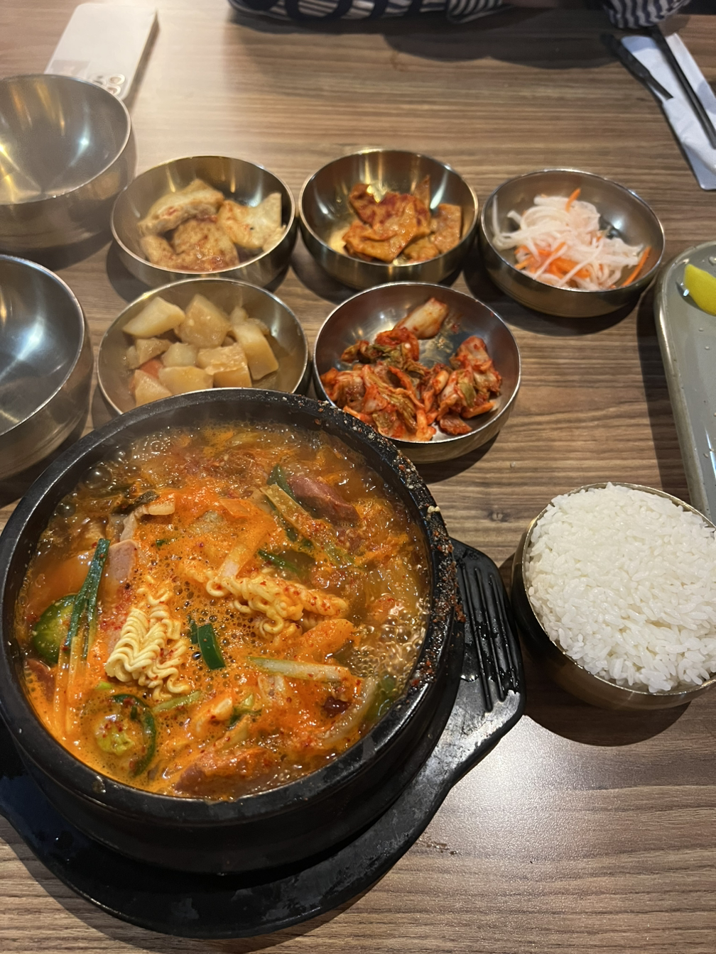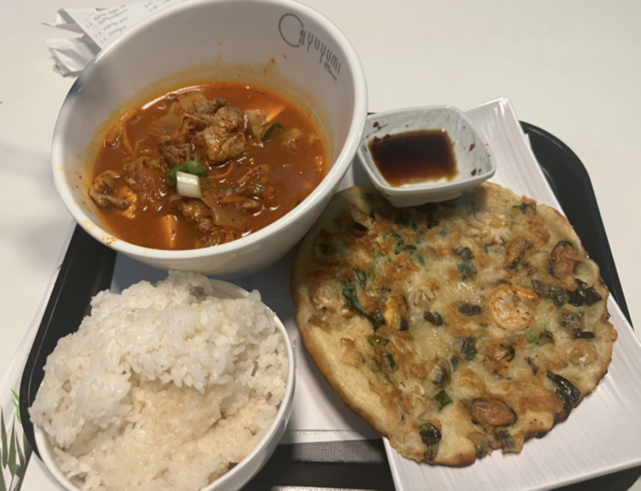 ‘Yuyumi’라는 식당이었다. 사람은 그다지 많지 않았고 캐주얼한 분위기였다. 주문도 키오스크에서 할 수 있었다. 비빔밥부터 치킨까지 다양한 종류의 음식들이 있었는데, 나는 한 치의 망설임도 없이 김치찌개를 골랐다. 그리고 배가 너무 고팠기 때문에 해물파전까지 참지 않았다.