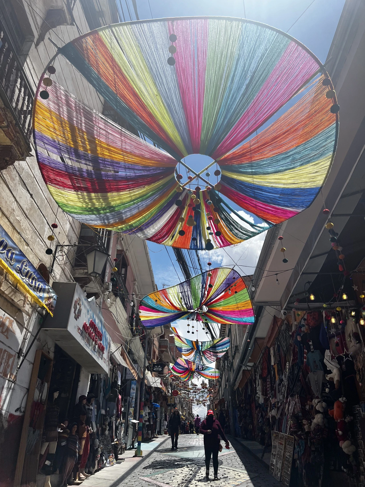 성당 뒤쪽으로 좀 더 걸어가면 마녀시장이 나온다. 마녀시장이라는 이름이 내 호기심을 조금 자극했는데 이름만큼 오싹한 장소는 아니었다. 그냥 이것저것 다양하게 팔고 있는 다채로운 색감의 시장 거리였다. 나는 여기서 '볼리비아스러운' 바지를 하나 샀다. 줄무늬가 인상적인 천으로 된 붉은 바지였다. 사실 그 무엇보다도 날이 너무 더웠는데 드디어 나이키 기모 바지에서 탈출할 수 있다는 점에 나는 만족했다. 거리를 걷다 보면 상점에 곳곳에 걸린 미라로 된 새끼 라마가 눈에 띄는데, 새 집을 지을 때 라마를 마당에 묻으면 행운이 온다고 한다.