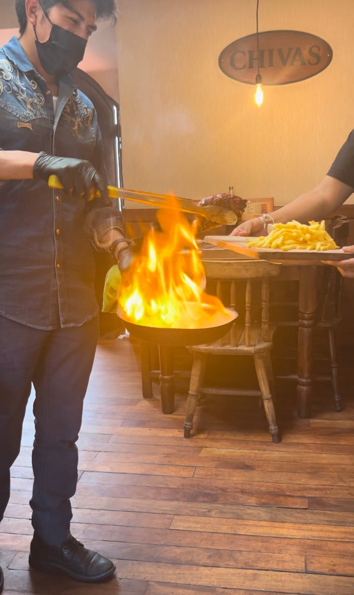 나는 시그니쳐 같아 보이던 잭다니엘 스테이크를 주문했다. 음식이 생각보다 오래 걸려 왜 안 나오지 싶던 찰나, 갑자기 내 앞으로 고기를 들고 오시더니 불쇼를 하시기 시작했다. 모두가 내 테이블만 비라보는 상황. 다소 당황했지만 침착하게 카메라를 켰다.