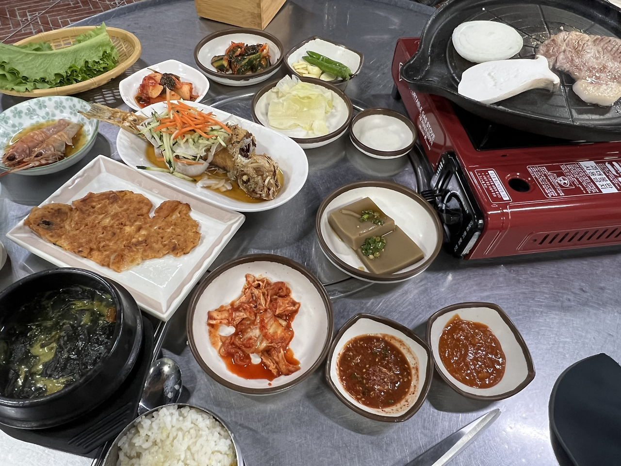 무엇보다 음식들이 훌륭했다. 목살은 고기니까 당연히 맛있었고 뜨끈한 전복성게미역국은 속을 잘 달래주었다. 제주도여서 기분 탓인가 해산물들이 더 신선하게 느껴졌다.