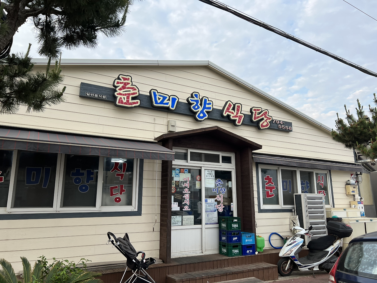 사계리라는 작은 마을에서 하루를 머물게 되었는데, 자전거를 두고 길을 조금 걷다 춘미향 식당을 발견했다. 정확히 무슨 메뉴를 파는 곳인지도 몰랐지만 나는 이름과 간판에서부터 맛집의 기운을 감지했다.