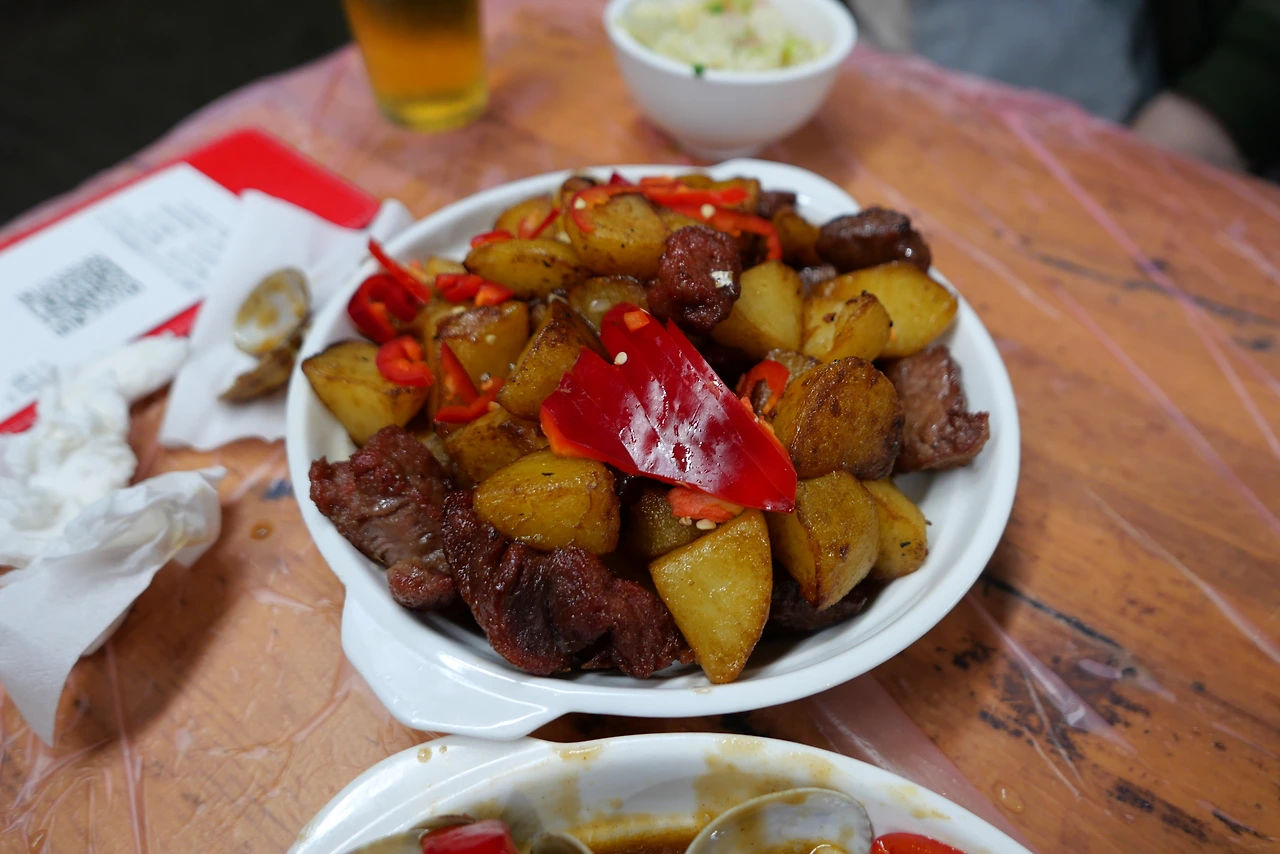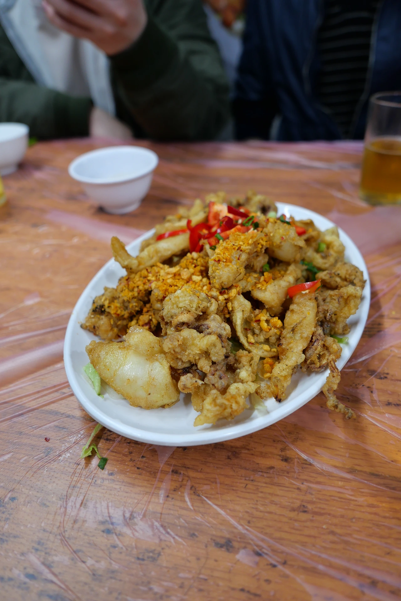 우리가 시킨 이런저런 음식이 나왔다. 배가 고파 허겁지겁 한 입. 모든 메뉴가 기본 이상으로 맛있다. 확실히 불 맛도 잘 입혀져 있었고, 잘 볶고 잘 튀겨 나왔다. 술안주로 100점. 홍콩의 블루걸 맥주와 환상적인 궁합이었다.