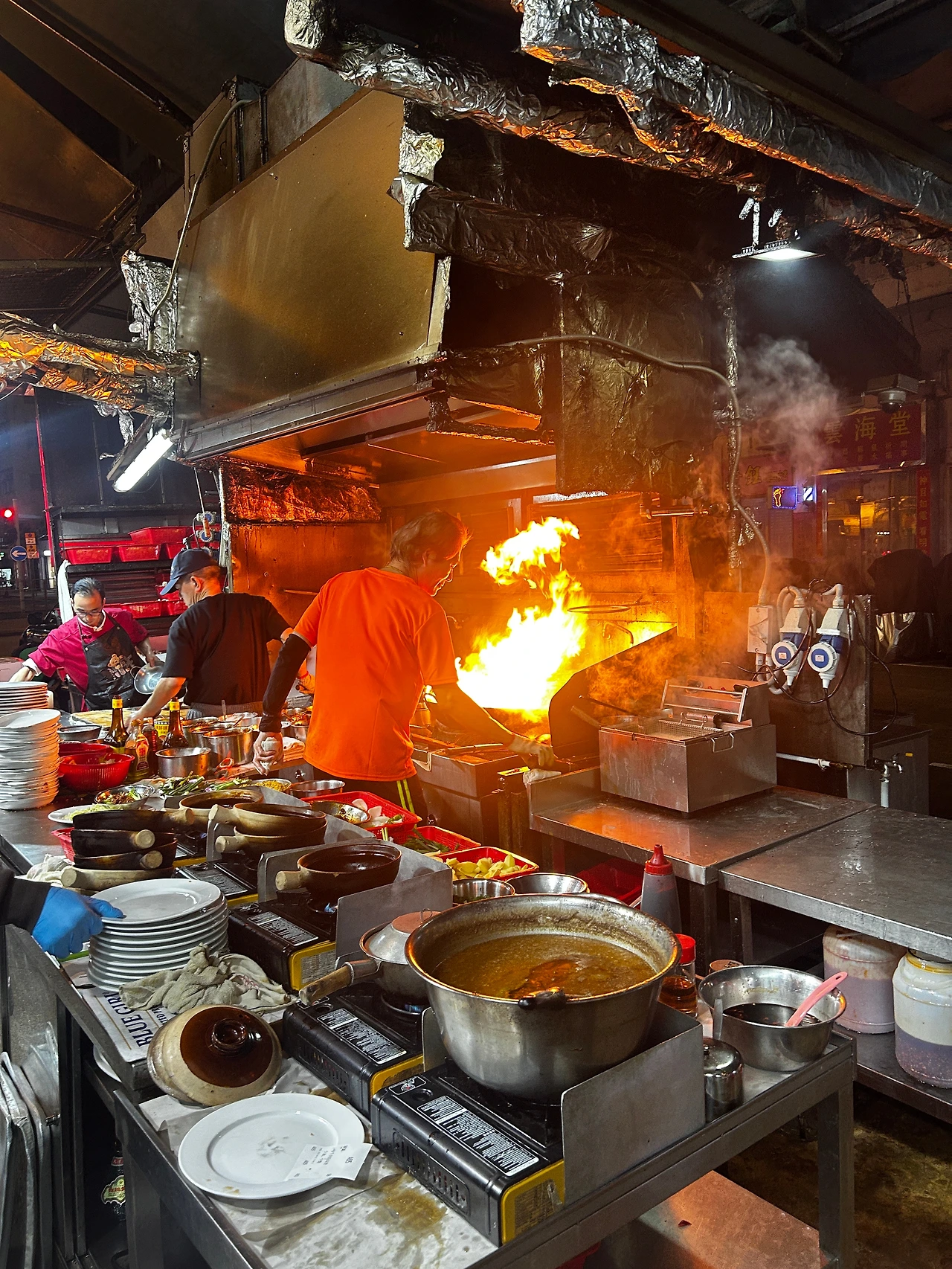 어느새 저녁이 되었다. 배도 채우고 맥주도 한잔할 겸 찾은 이곳. TV 프로그램에도 나오고 젠슨 황 사진까지 걸려있는 유명한 집이다. 그만큼 웨이팅도 길었다. 기다리면서 사장님께서 요리하시는 모습을 볼 수 있는데 정말 불의 달인 같았다.