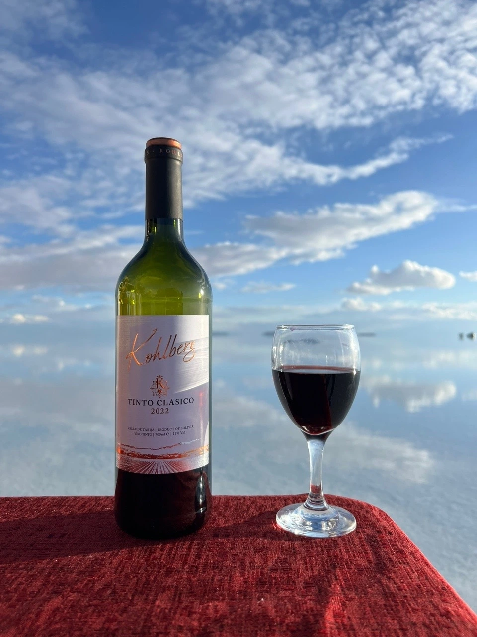 가이드님은 갑자기 다시 한번 테이블을 설치하시기 시작했다. 그리고 와인잔과 와인을 세팅했다. 노을을 바라보며 우유니 사막 한가운데에서 마시는 와인. 정말 감성 끝판왕이라고 할 수 있었다. 물론 와인의 맛은 없었다. 내가 와인을 잘 알지 못해도 이 정도는 알 수 있었다. 하지만 이 와인의 맛이 아무리 식초와 같다 한들 천국과 같은 공간의 분위기는 깰 수 없었다.