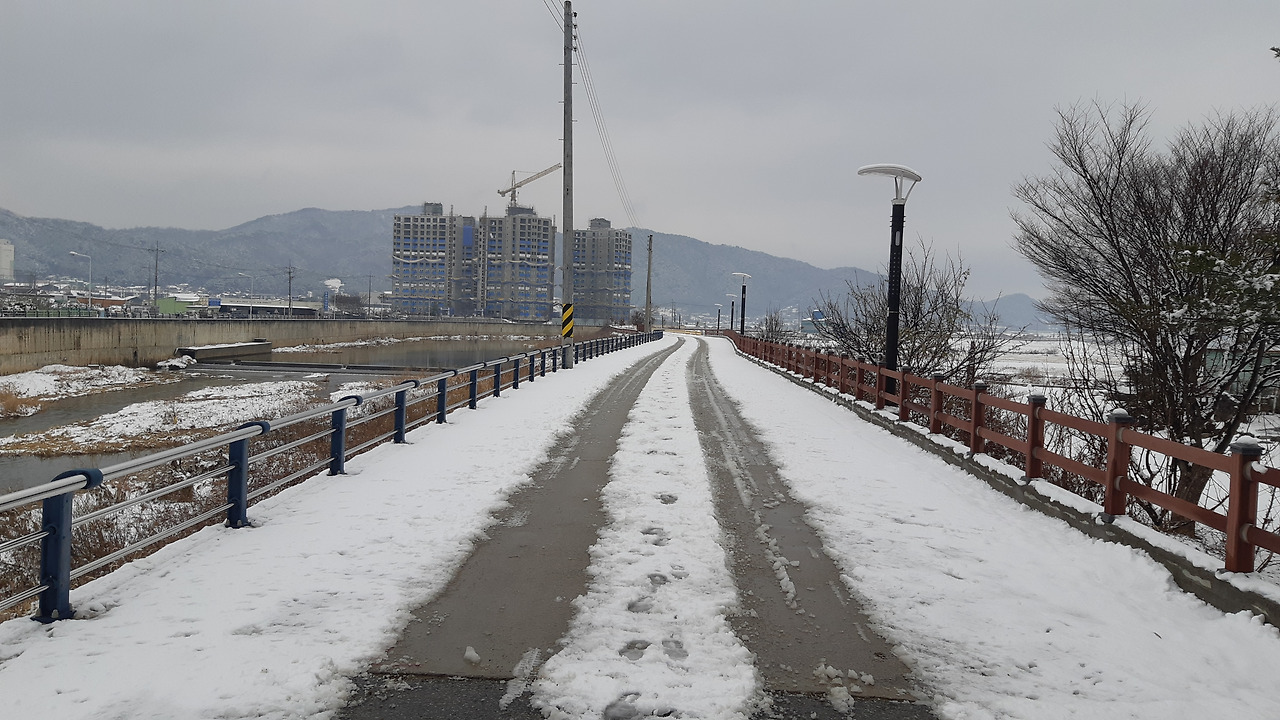 눈 내린 오늘은 오르막길이 뛰기 더 좋았다.