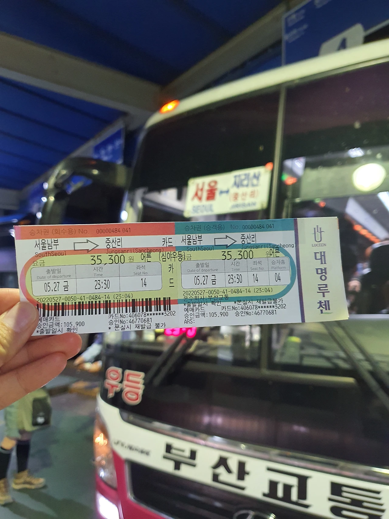 에서 중산리로 가는 버스에 탑승하였고 약 3시간 30분 뒤인 2022년 5월 28일(일) 02시 58분에 경상남도 산청군 시천면 중산리에 내렸다.