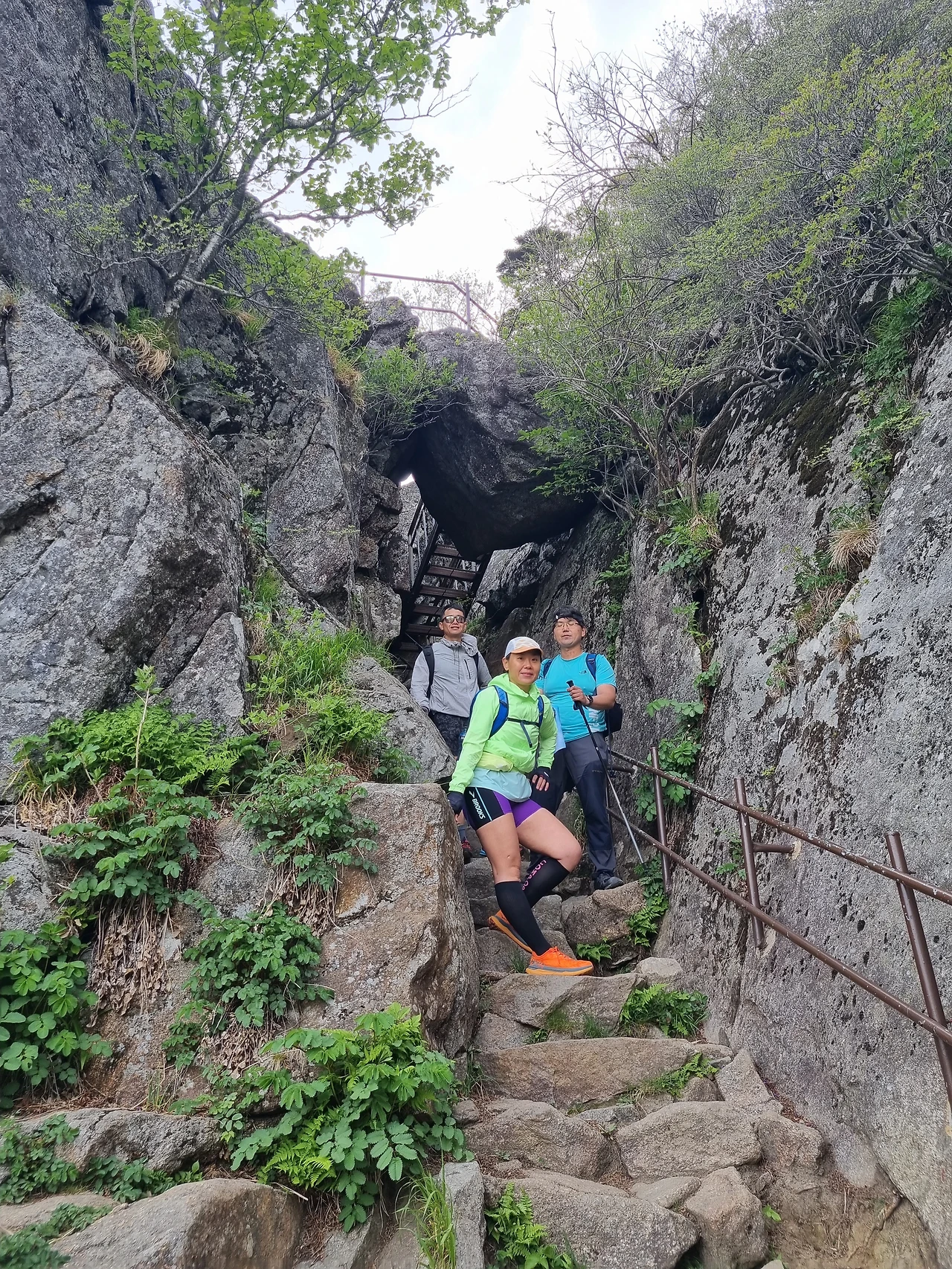한번 더 팔벌리기!(천왕봉 인근)우리는 대청봉에서 백무동으로 내려가는 코스를 선택하였고 하산을 시작한지 30분 만에 통천문에 도착하였다. 여기까지가 통천길인가 생각을 하면서 기념사진을 찍고 내려갔다.