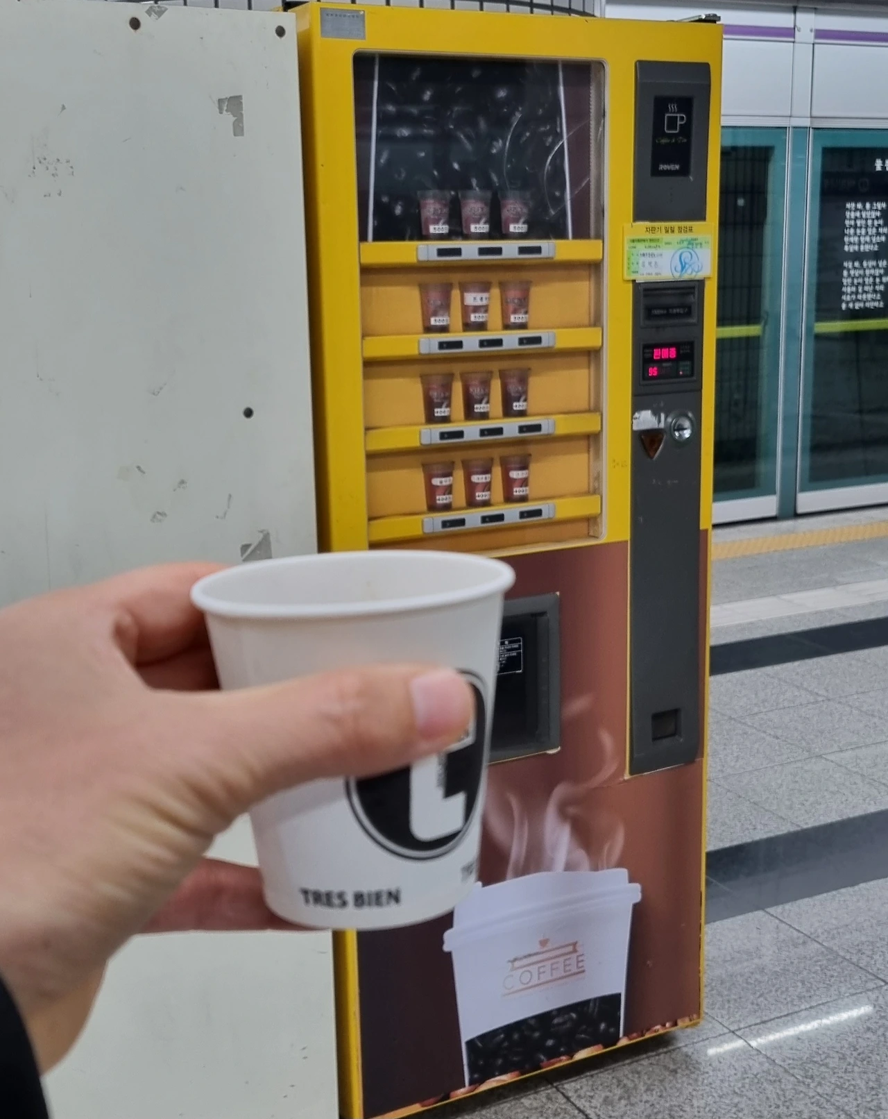 그런데 지하철역에서 커피자판기를 발견하였다.
