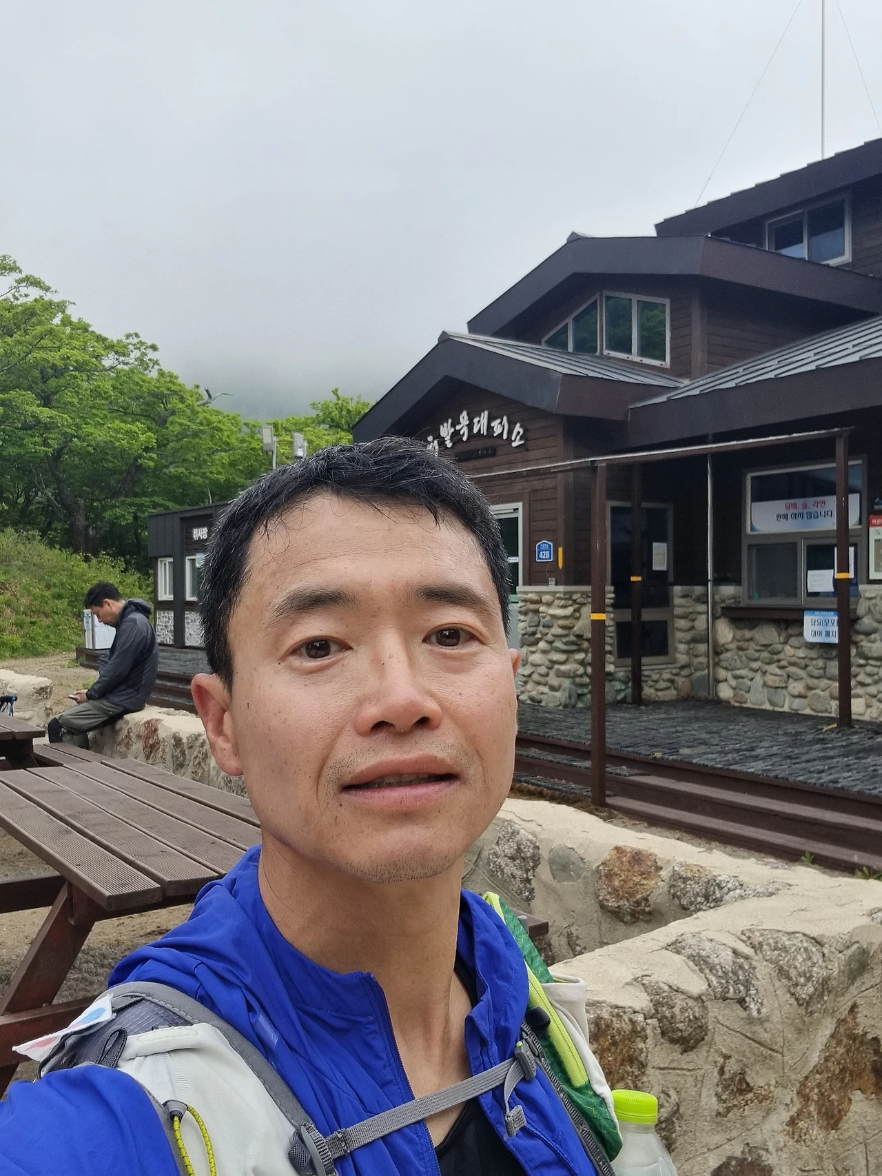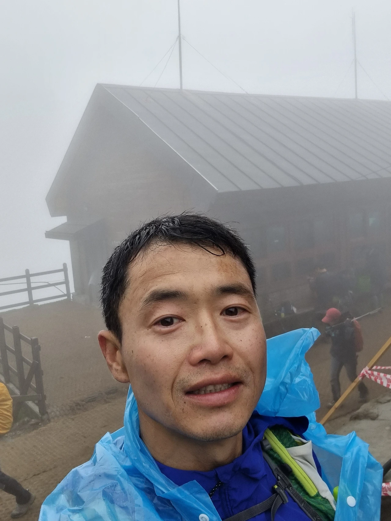휴식장소에서 바람막이를 입어도 오한이 온 것 같이 추웠고 두려움에 하산도 고민하였다.