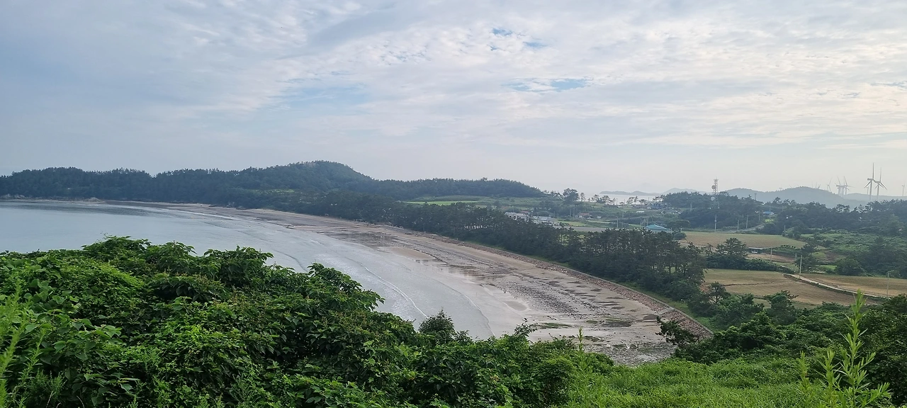 언덕에서 가장 높은 지점에 도착했을 때 바다, 섬, 산, 모래사장, 밭, 도로, 집, 바람개비(풍력발전소) 등이 어우러져있는 풍경을 보았다.