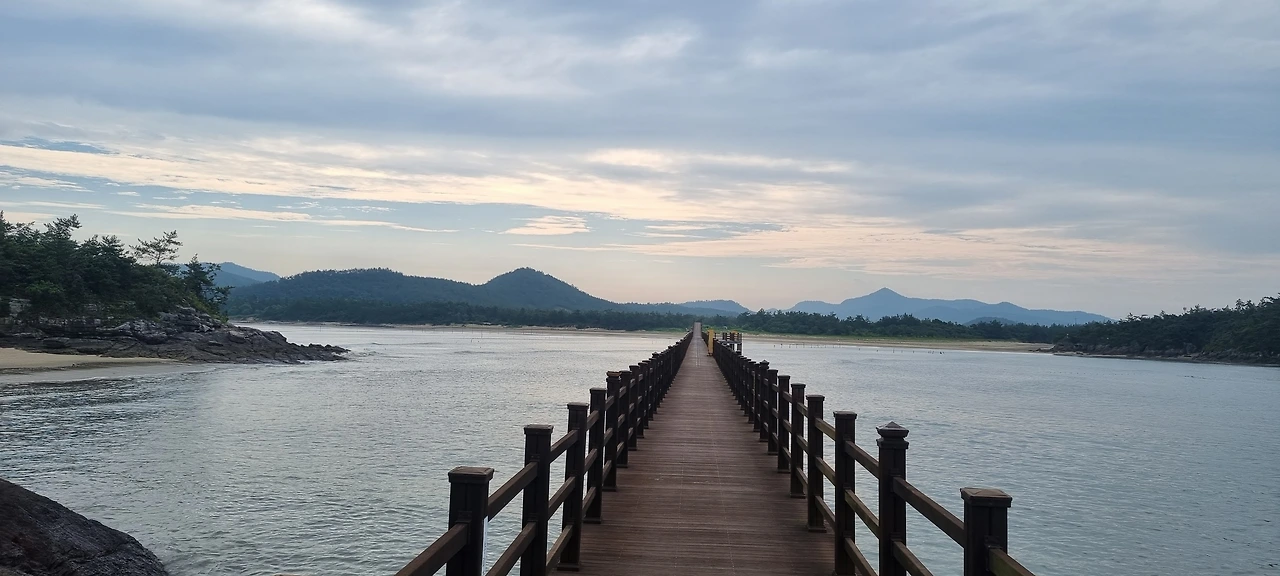언덕에서 반대편으로 뛰어가니 바다 위에 있는 멋진 데크길이 나왔다.