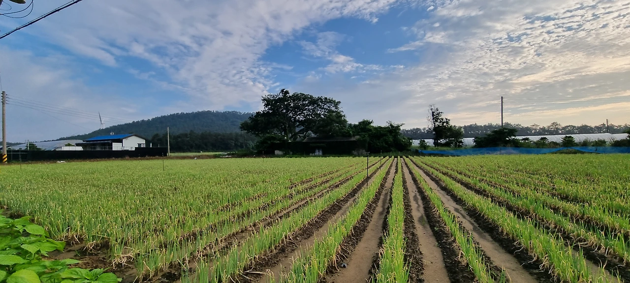 달리기 초반 주로 양옆은 양파밭이 있었다. 제법 이른 시간인데 많은 분들이 일하고 계셨다.