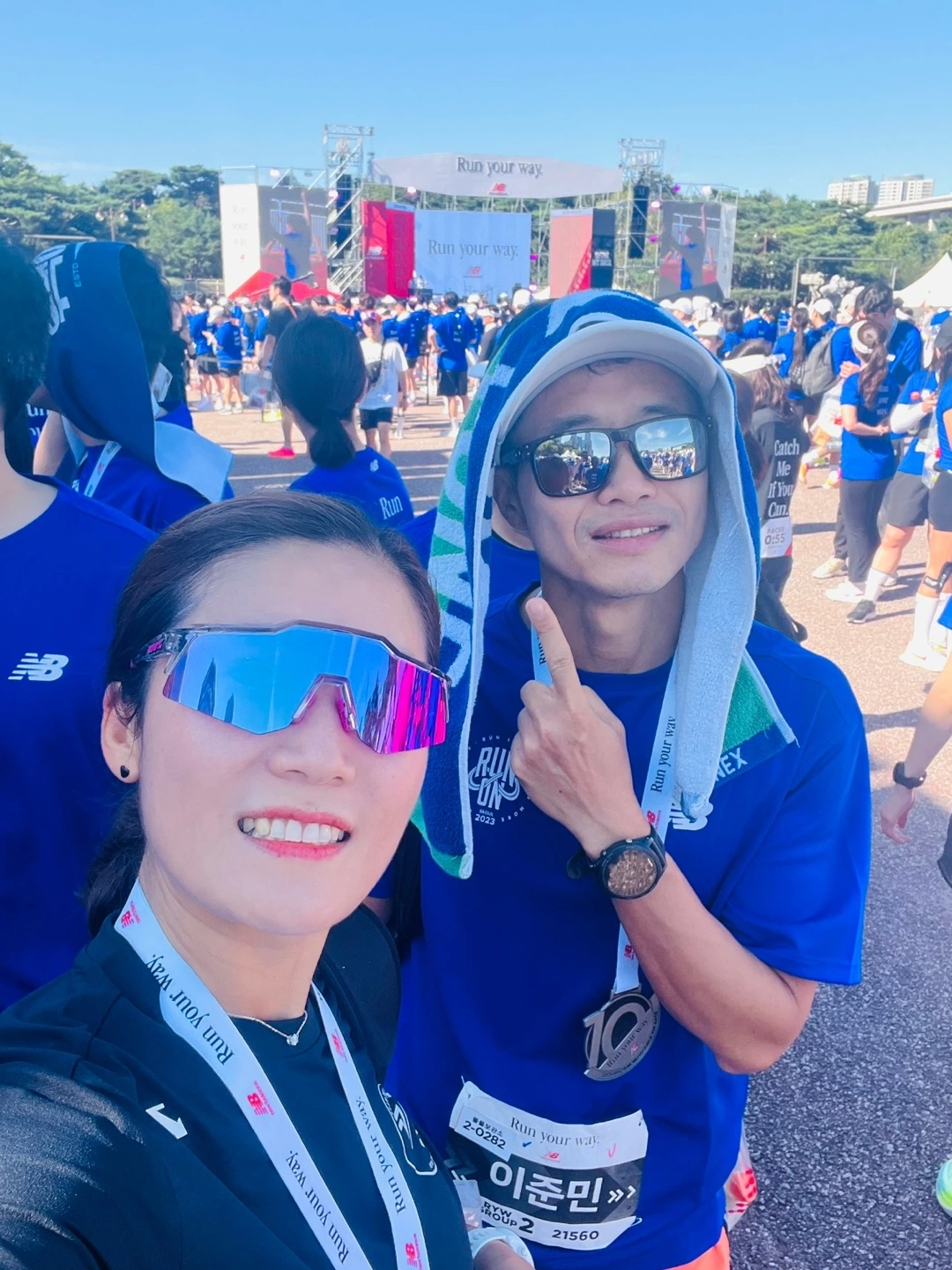 이때부터 자주색 티셔츠를 입은 20대 후반으로 보이는 러너와 계속 같이 뛰었다.