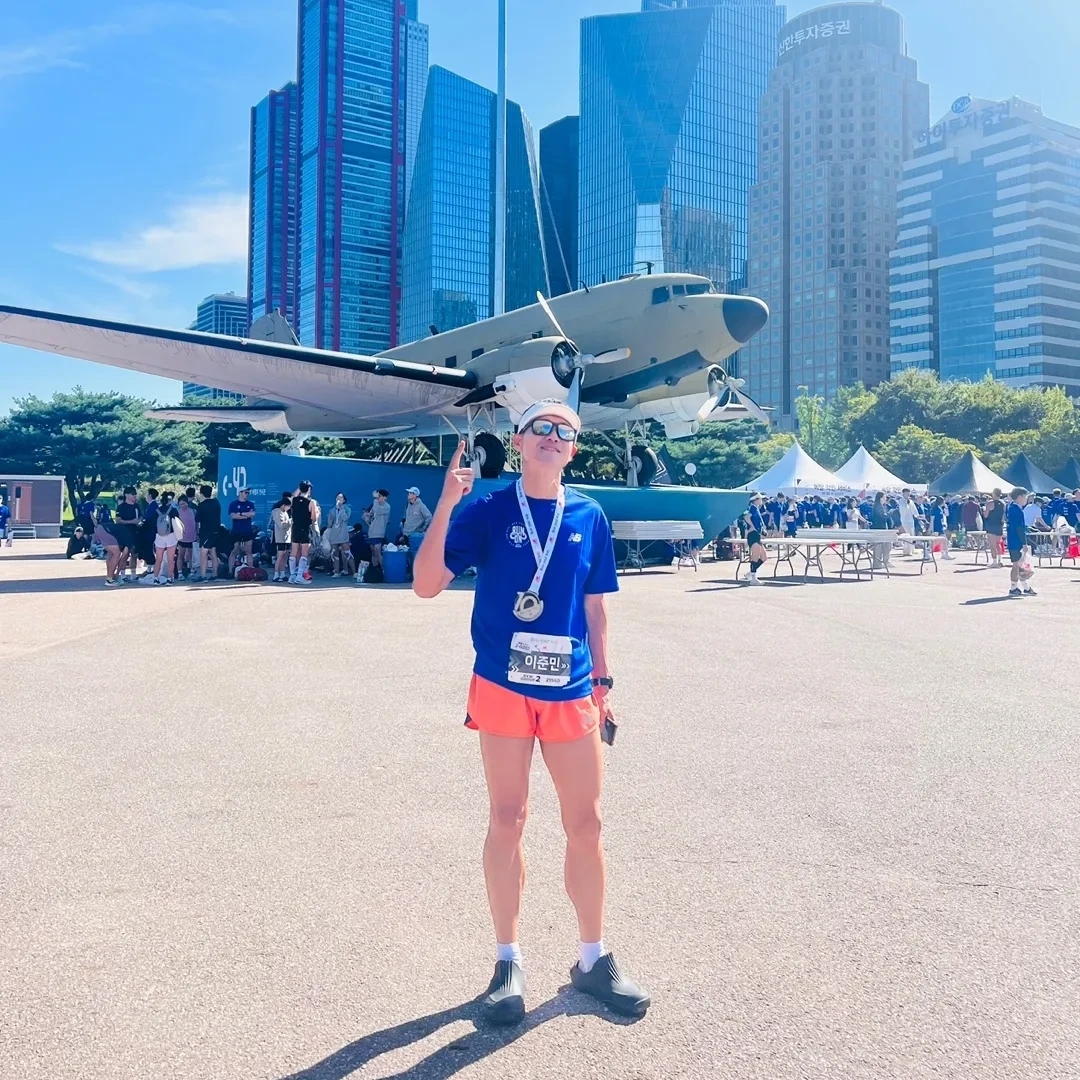 서강대교를 건너고 반환점을 돌고 다시 서강대교를 건너고 여의도 서측방을 돌고 있는 동안 같이 뛰었다.