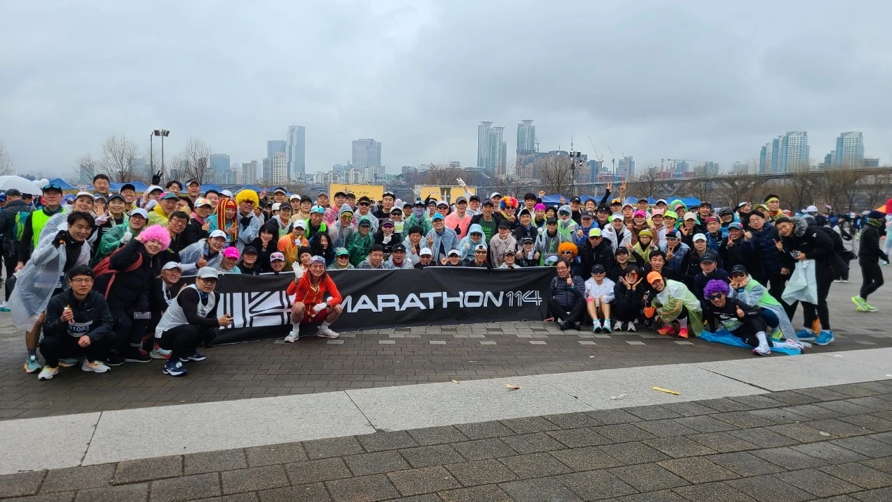 출발 전 마라톤 114 단체사진고구려마라톤은 항상 2월 말에 실시한다.